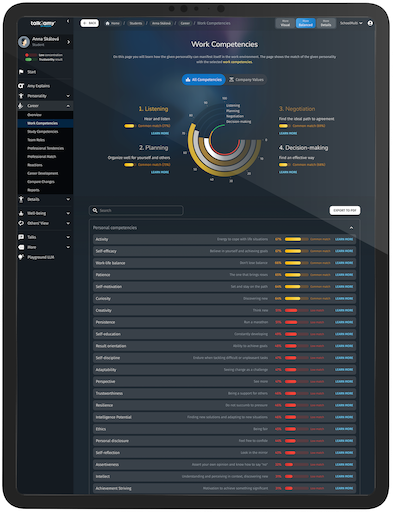 From assessing students' personalities to their personal and career development, career matching, and mapping relationships within school classes. From evaluating individuals to analyzing groups and gaining insights into the entire school.